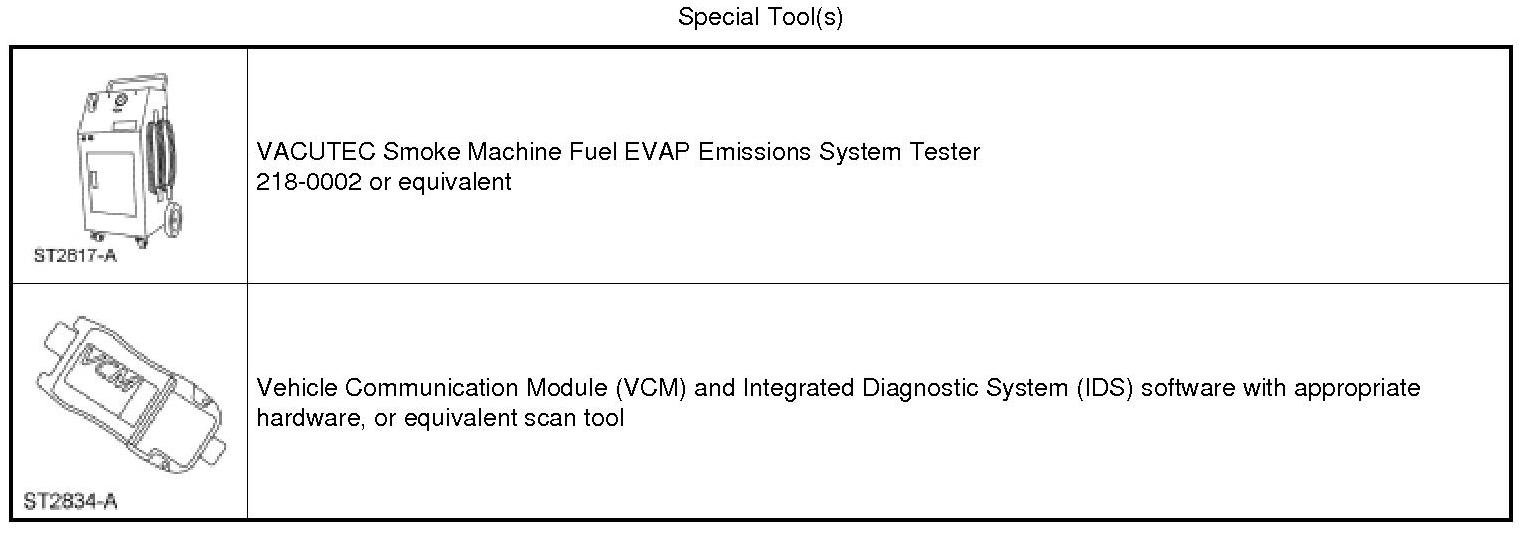 Introduce smoke from the VACUTEC Smoke Machine Fuel EVAP Emissions System Tester into the EVAP system and verify that smoke is exiting the fuel tank filler pipe neck area. For additional information, refer to the manufacturer's instructions.