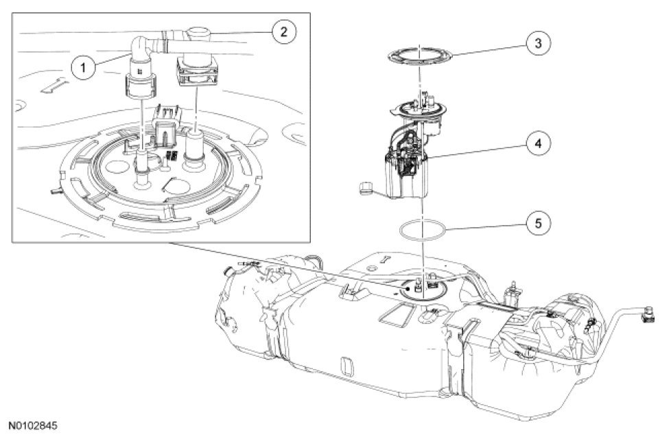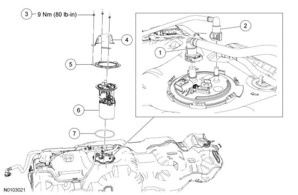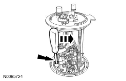 5. NOTICE: Carefully remove the Fuel Pump (FP) assembly to avoid damaging the fuel level sensor.