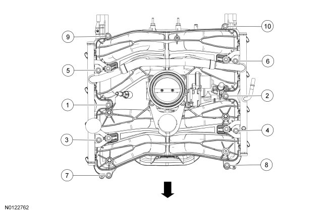 intake manifold bolts and tighten in 2 stages in the sequence shown.