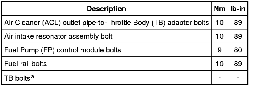 Torque Specificationsa Refer to the procedure.