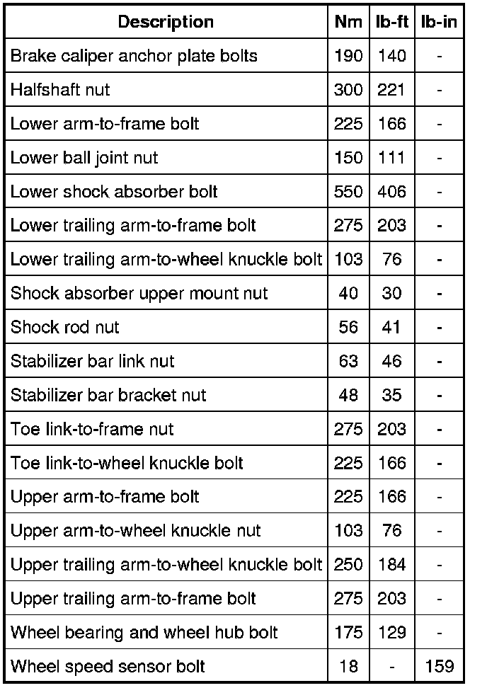 Torque Specifications