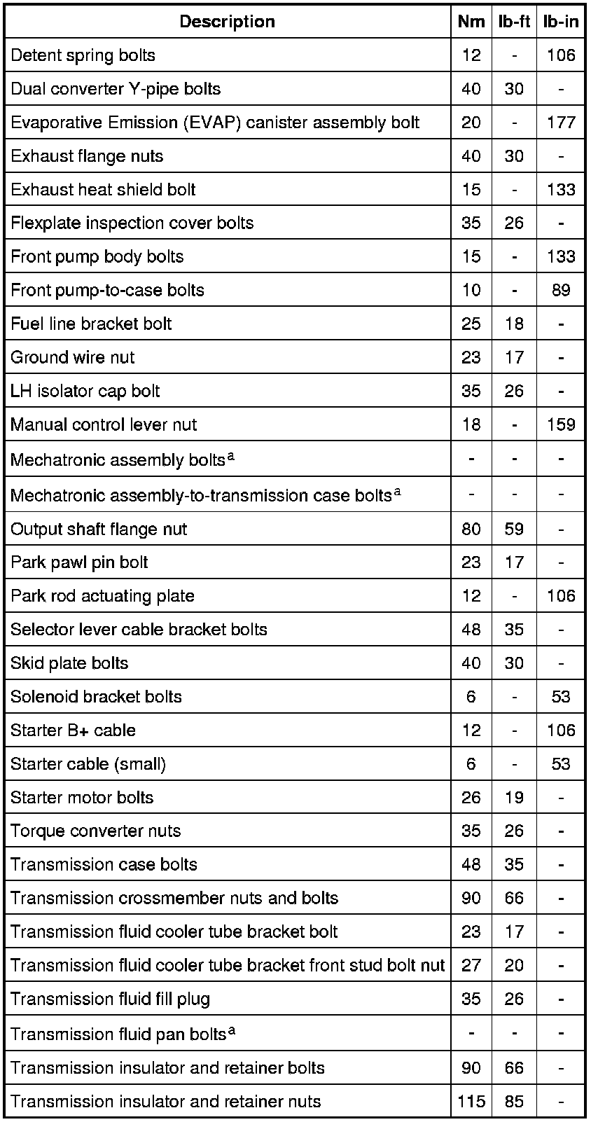 NOTE: Shift speed ranges are approximate for all applications. For specific applications (engine, axle ratio, tire size and application), refer to the Automatic Transmission Specification booklet.