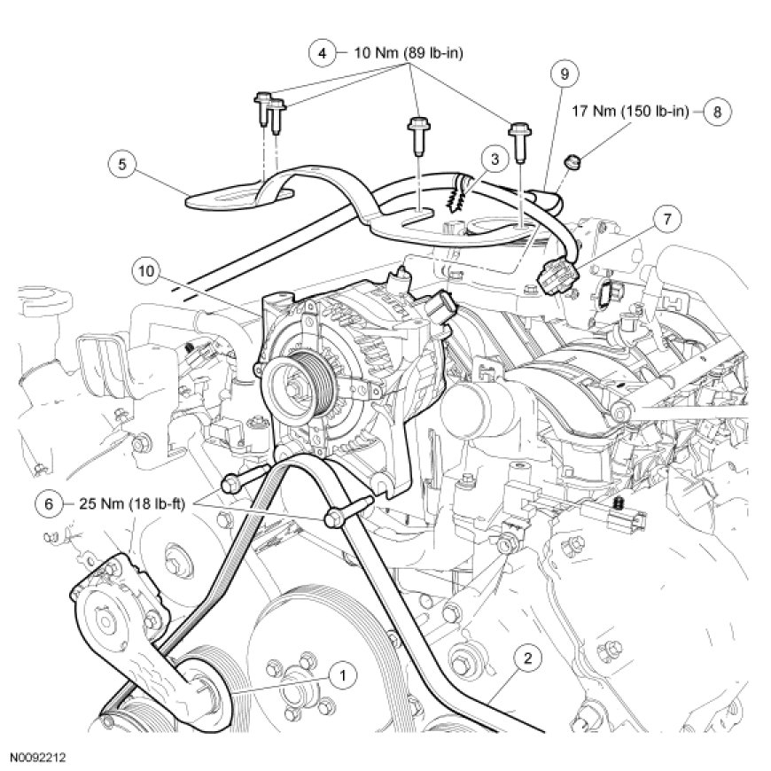 - Install a new B+ terminal nut and tighten to 17 Nm (150 lb-in).