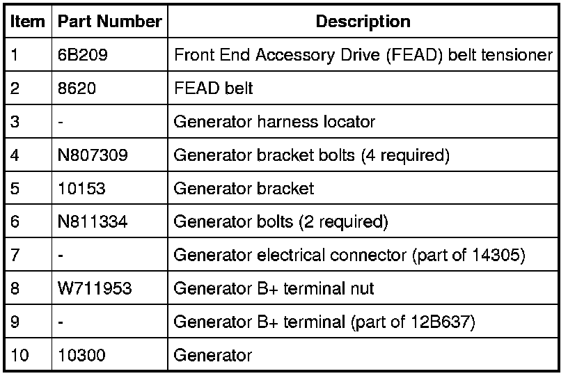 9. Position the generator B+ protective cover aside, remove and discard the nut, then position the generator B+ terminal aside.