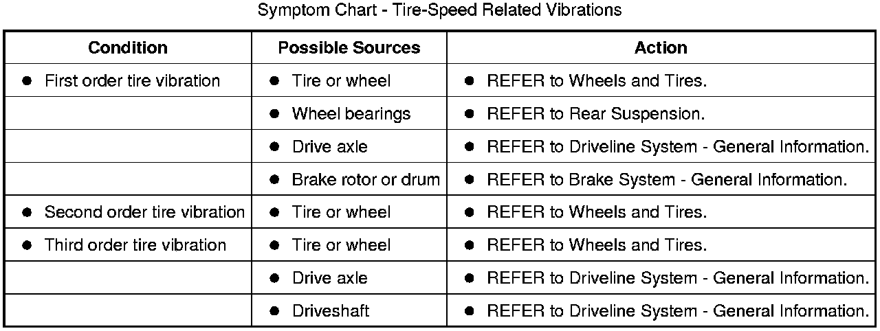 Symptom Chart - Vehicle-Speed Related Vibrations