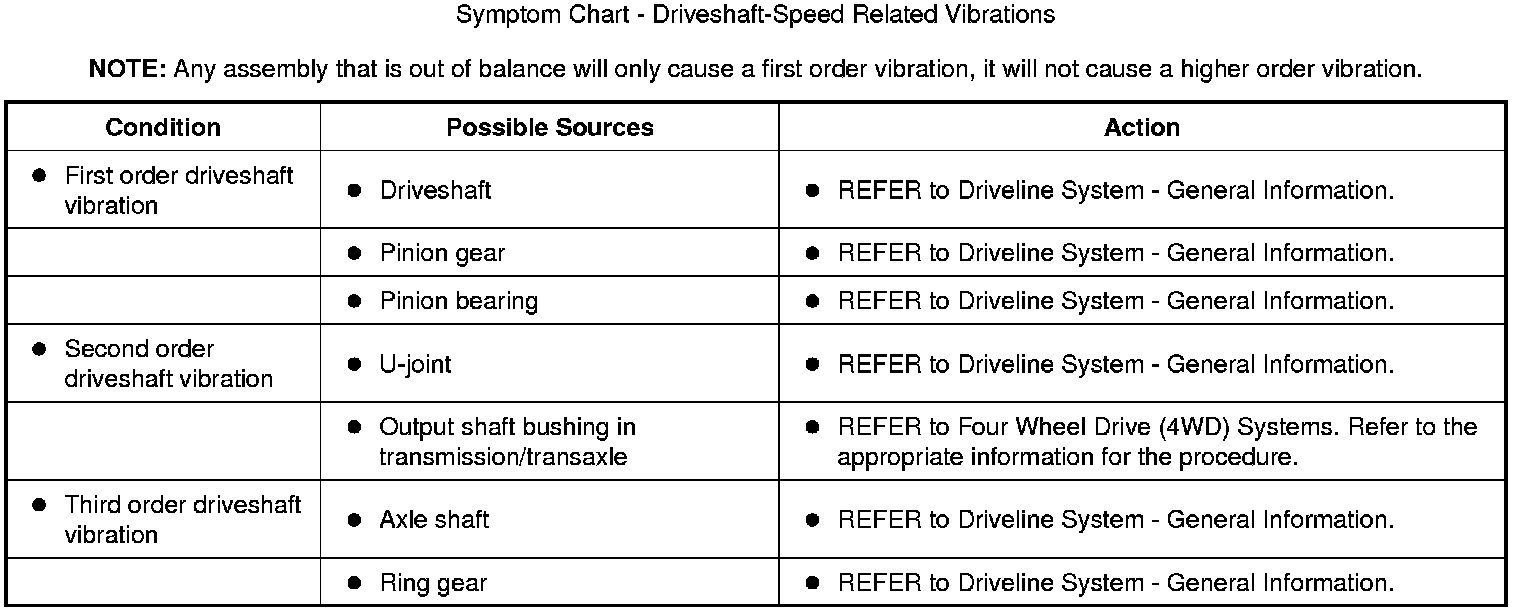 Symptom Chart - Driveshaft-Speed Related Vibrations