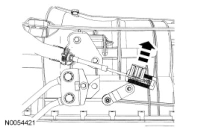 4. NOTICE: To prevent selector lever cable damage, do not apply force to the selector lever cable between the manual control lever and the selector lever cable bracket.