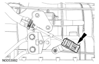 7. NOTE: When installing the selector lever cable end, make sure that the selector lever cable end is securely installed onto the manual control lever. Pull back on the selector lever cable to make sure that the selector cable end is securely installed onto the manual control lever.
