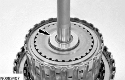6. NOTICE: Do not install the snap ring on the forward clutch hub with the snap ring gap in the same position as the original snap ring or damage to the transmission can occur.