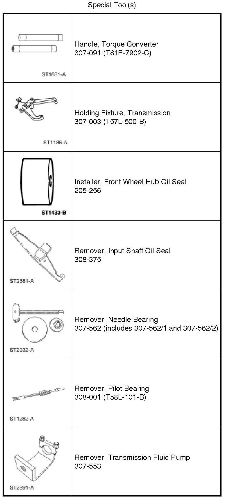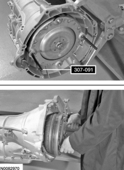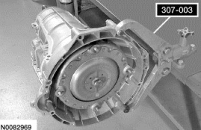 1. Install Transmission Holding Fixture 307-003 on the torque converter housing and install the transmission on a bench.