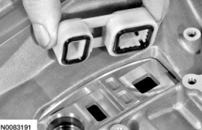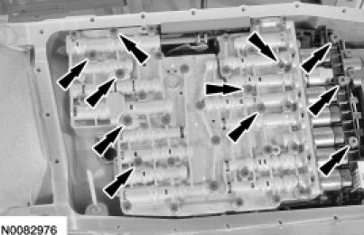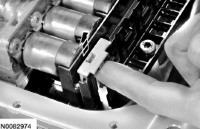7. NOTICE: Do not touch the electrical connector pins or the exposed solenoid tabs on the Transmission Control Module (TCM). Electrostatic discharge may occur and may cause damage to the mechatronic unit.