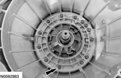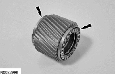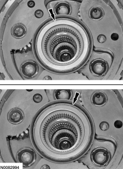 32. If the T10 thrust bearing is attached to the rear planetary carrier, remove it from the carrier. If it stayed in the transmission case when the rear planetary carrier was removed, remove it from the transmission case.
