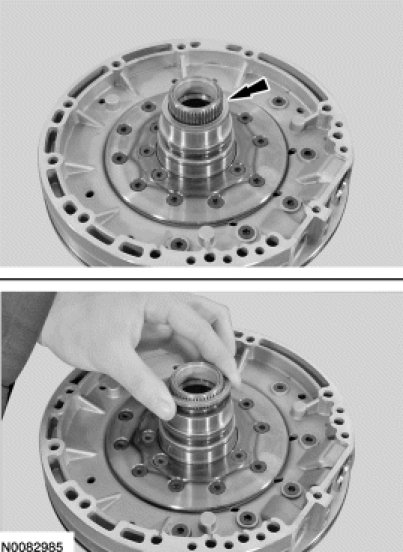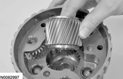 29. NOTE: When removing the sun gear, take note that the taper edge is facing up toward the torque converter housing.