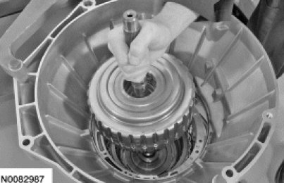27. NOTE: When removing the planet carrier and the low/reverse clutch pack, some of the clutch plates may stay in the case. Remove any clutch plates from the transmission that were not removed with the carrier and keep the clutch plates together.