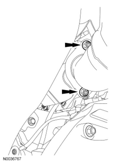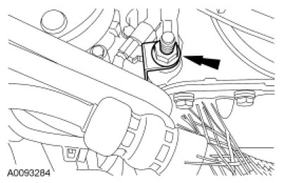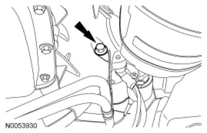 14. Align the transmission fluid cooler tube bracket and install the remaining transmission case bolt.