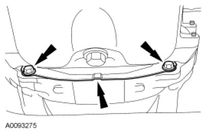 NOTE: Make sure that the transmission jack makes contact on the outer ribs of the transmission fluid pan.