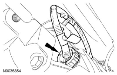 16. Install the transmission fluid cooler tubes and the transmission fluid cooler tube bracket bolt.