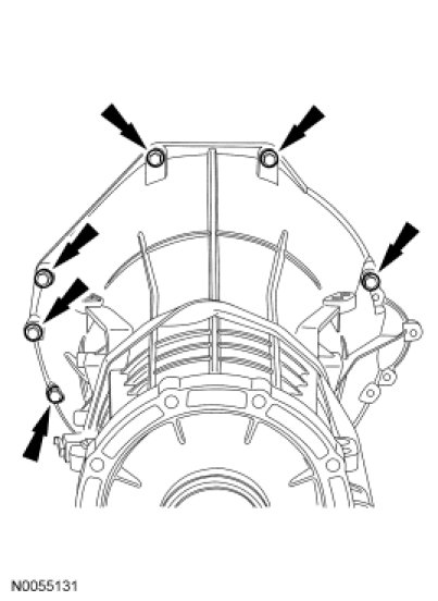 6. NOTE: Install the transmission case bolts in their correct locations noted during removal.