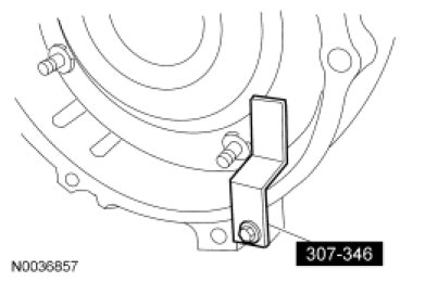 3. NOTICE: The converter housing is piloted into position by dowels in the rear of the engine block. The torque converter must rest squarely against the flexplate. This indicates that the converter pilot is not binding in the engine crankshaft.
