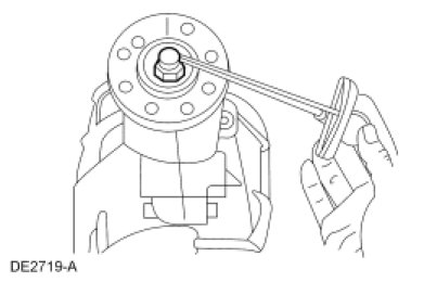 - Place the drive pinion bearing adjustment shim on the pinion gear.