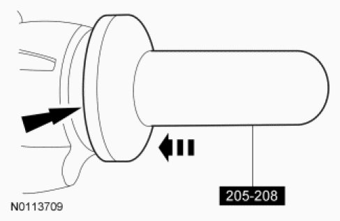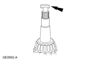 - Using a suitable press and the Drive Pinion Bearing Cone Installer, press the pinion bearing until it is firmly seated on the pinion gear.