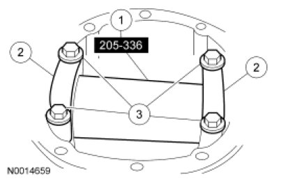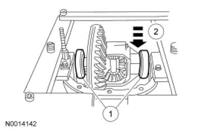 45. NOTE: Hand-tighten the differential bearing cap bolts prior to releasing the Differential Carrier Spreader.