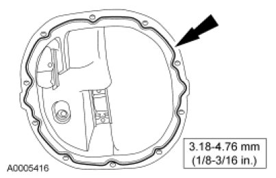 Apply a continuous bead of sealant, of the specified thickness, to the differential housing cover mounting surface as shown in the illustration.