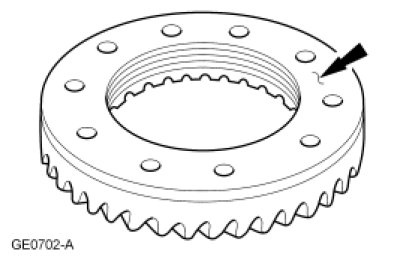 22. Use a fine flat file to remove any burrs or nicks from the ring gear mounting surface.