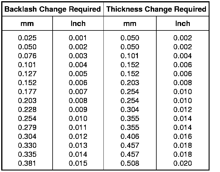 Differential Shim Size Chart
