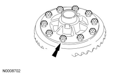 2. Hand-start 3 new ring gear bolts to align the holes in the differential ring gear and the differential assembly.