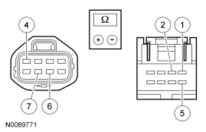 - Measure the resistance between RF power window motor C646-8, circuit GD138 (BK/WH), harness side and ground.