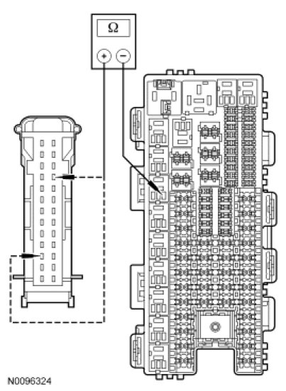 - Measure the resistance between rear window defrost relay socket pin 2, circuit CH122 (WH/OG), harness side and C228B-23 (HVAC module - Electronic Automatic Temperature Control (EATC)) or C2357B-23 (HVAC module - Electronic Manual Temperature Control (EMTC)) circuit CH122 (WH/OG), harness side.