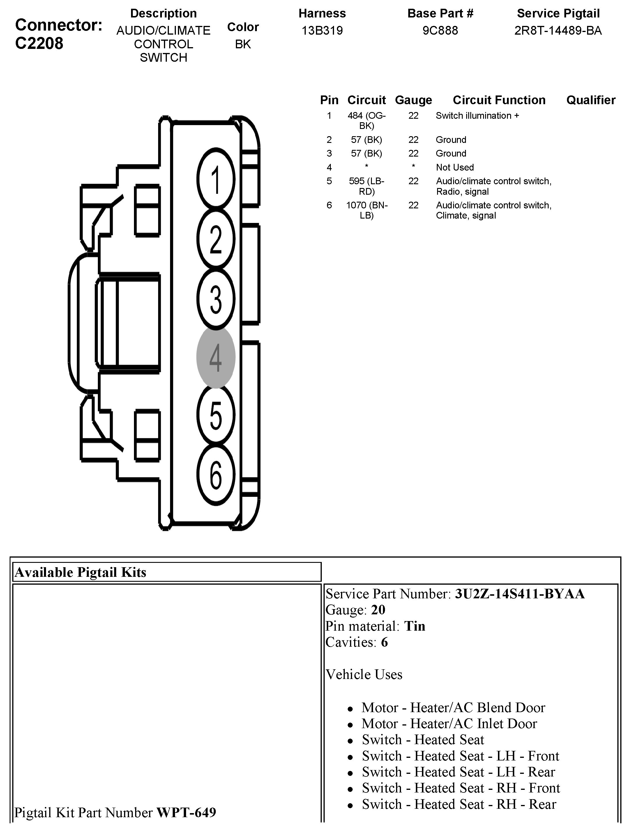 C2208 Audio/Climate Control Switch