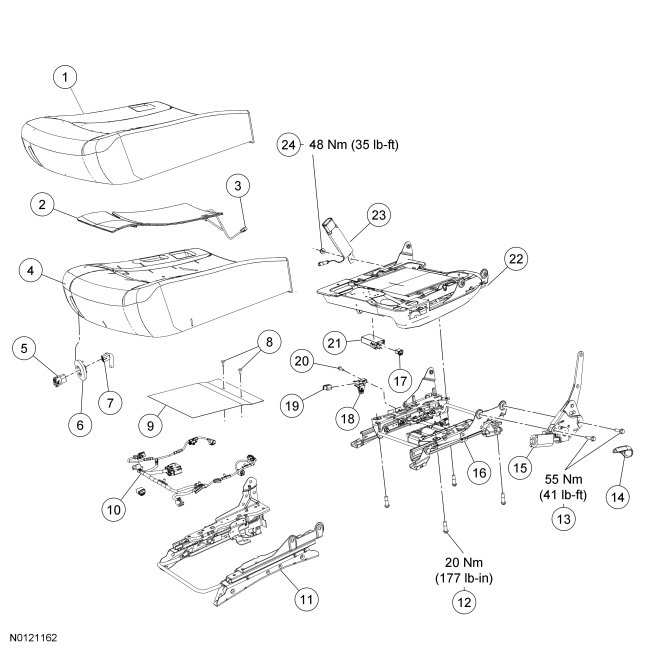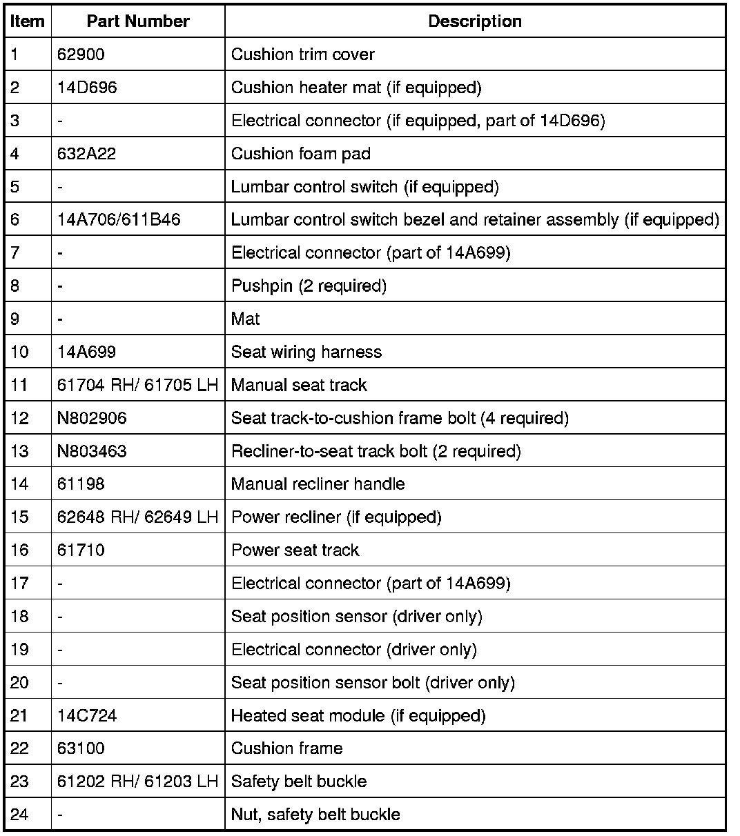 NOTE: Driver seat shown. For disassembly and assembly of the passenger seat cushion, refer to Occupant Classification Sensor procedure in Supplemental Restraint System Service and Repair.