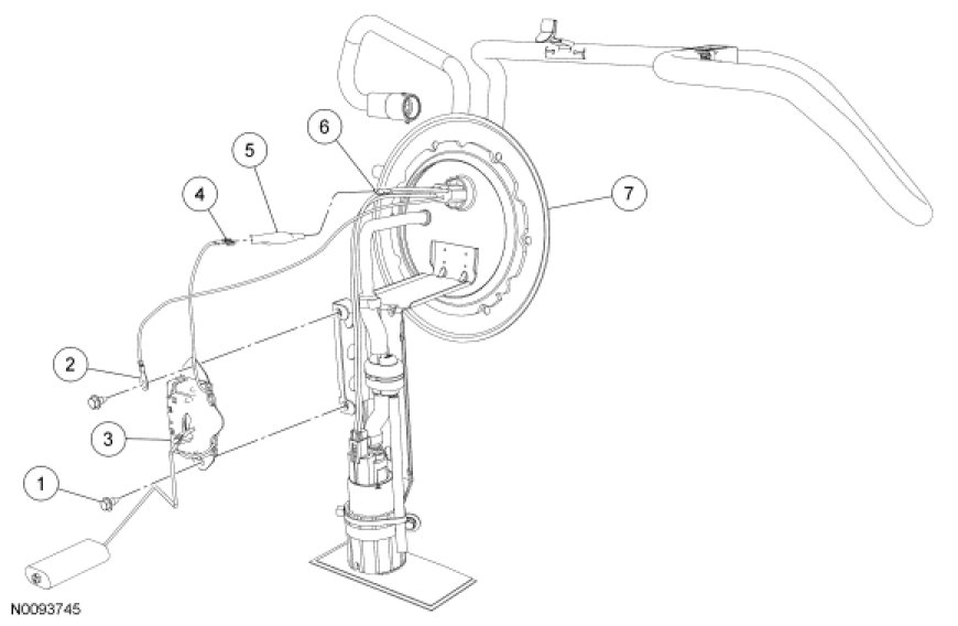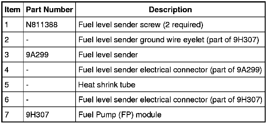 4. Remove the screws, the ground wire eyelet and remove the fuel level sender from the FP module.