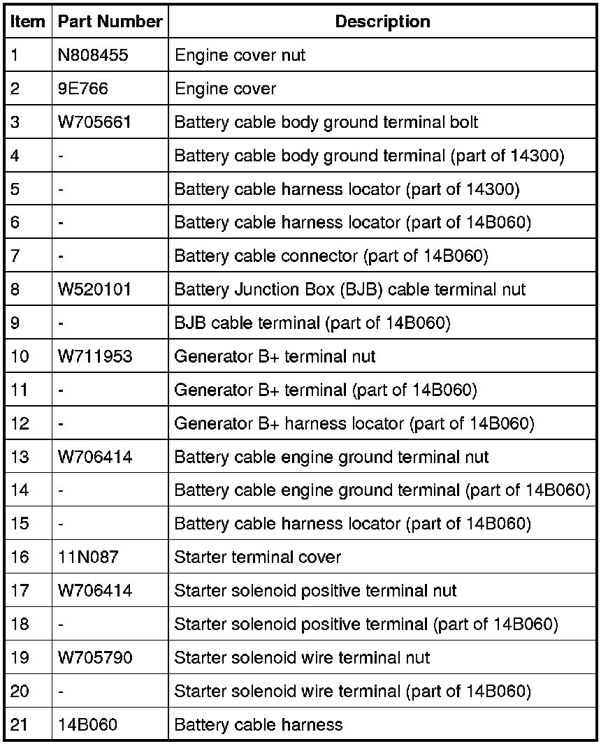 6. Remove the nut and position the Battery Junction Box (BJB) cable terminal aside.