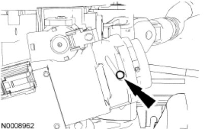 10. Remove and discard the ignition lock cylinder and drill shavings from the steering column.