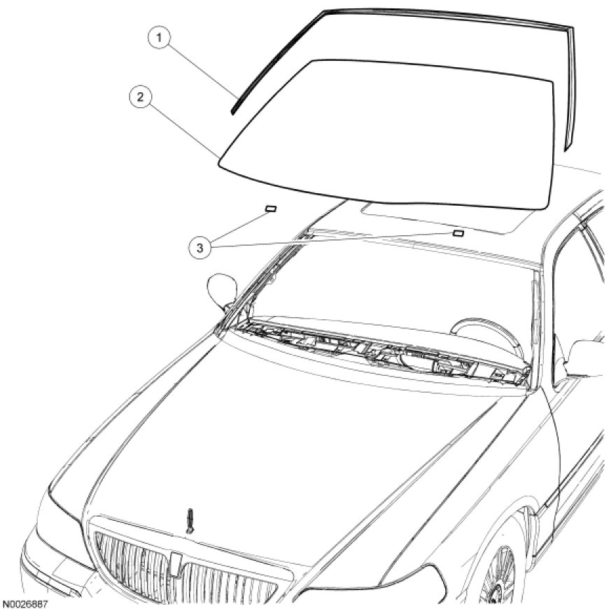 - Make alignment marks with tape or non-staining grease pencil (preferably at the windshield glass stop blocks if equipped) on the windshield glass and the body.