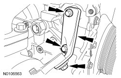 61. Remove the 2 bolts and the upper LH turbocharger bracket-to-cylinder block bracket.