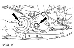 - Tighten the 2 engine roll restrictor through bolts to 103 Nm (76 lb-ft).