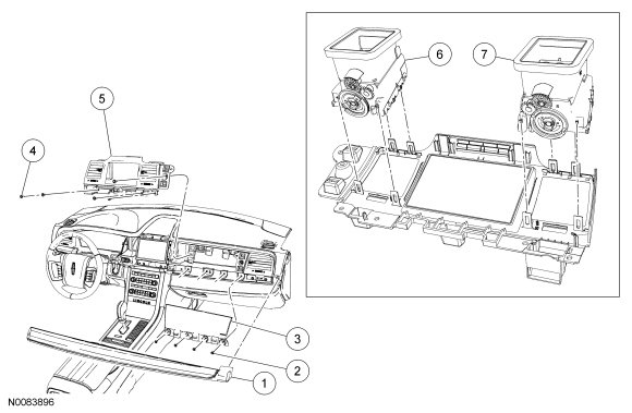 6. Detach and remove the RH and LH center registers.