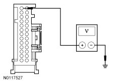 - Measure the voltage between the HVAC module C228A-13 or C2356A-13, circuit SBP15 (WH/RD), harness side and ground.