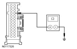 - Measure the resistance between the HVAC module C228A-23 or C2356A-23, circuit GD114 (BK/BU), harness side and ground.