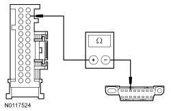 - Measure the resistance between the HVAC module C228A-25 or C2356A-25, circuit VDB06 (GY/OG), harness side and the DLC (Data Link Connector) C251-3, circuit VDB06 (GY/OG), harness side.