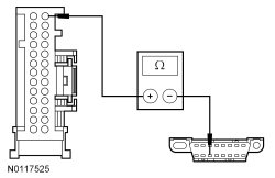 - Measure the resistance between the HVAC module C228A-26 or C2356A-26, circuit VDB07 (VT/OG), harness side and the DLC (Data Link Connector) C251-11, circuit VDB07 (VT/OG), harness side.
