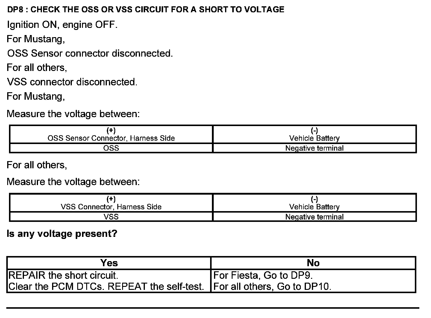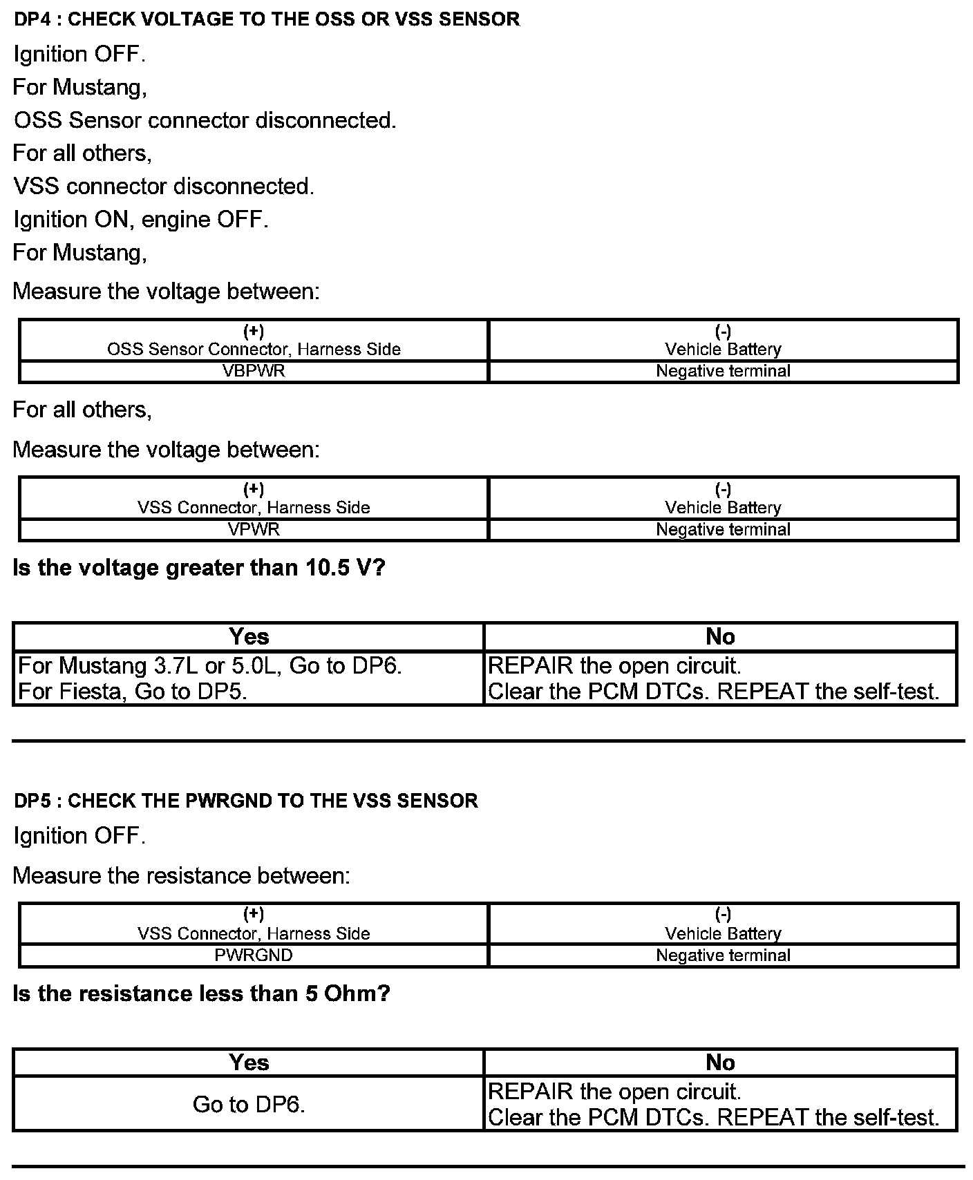Test DP: Output Shaft Speed (OSS) Sensor/Vehicle Speed Sensor ( VSS)