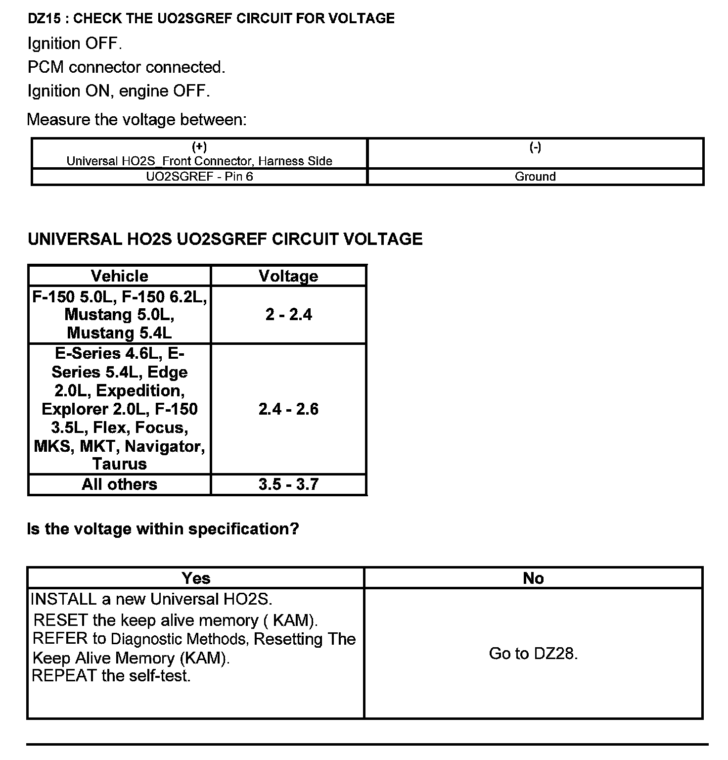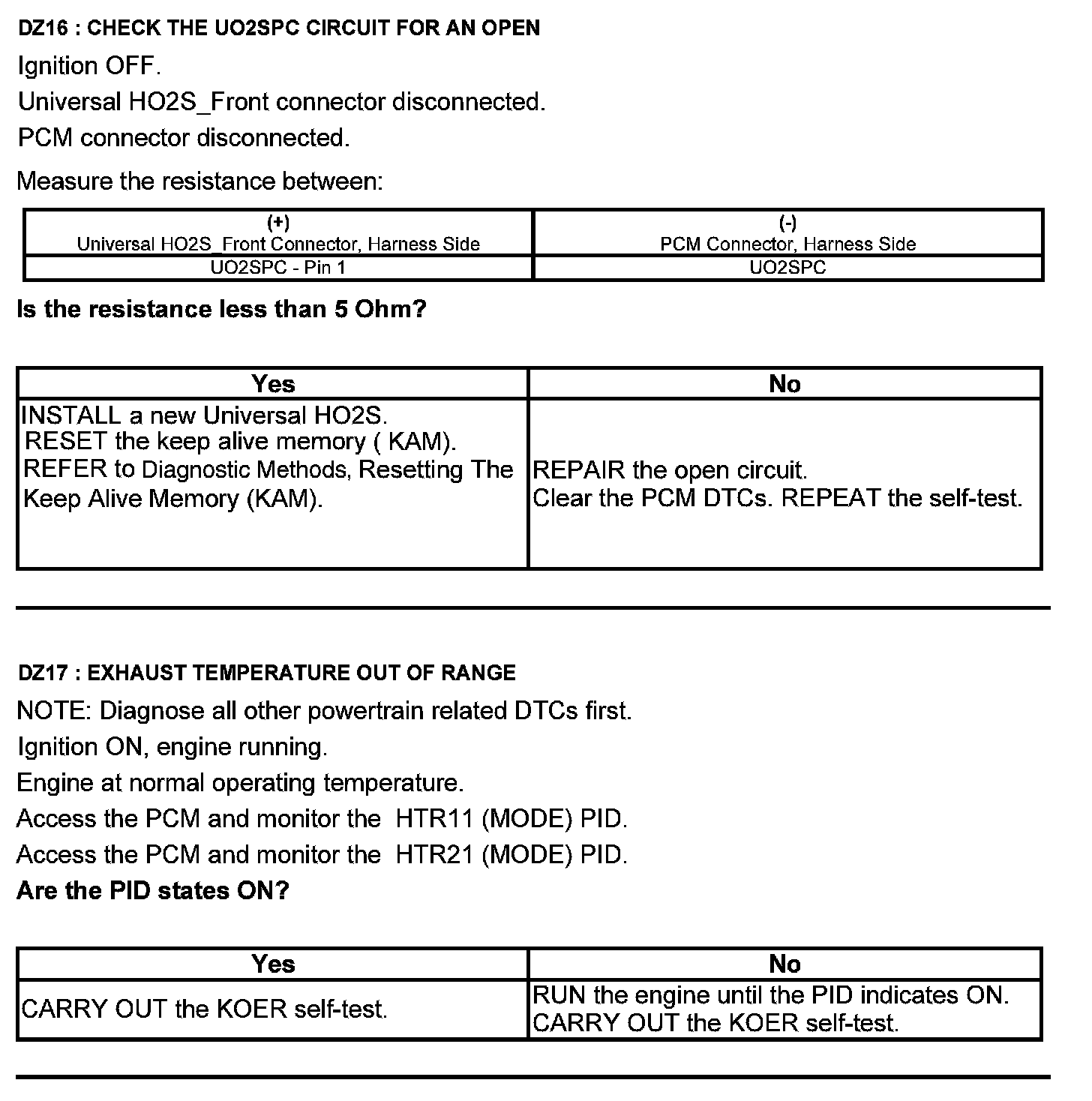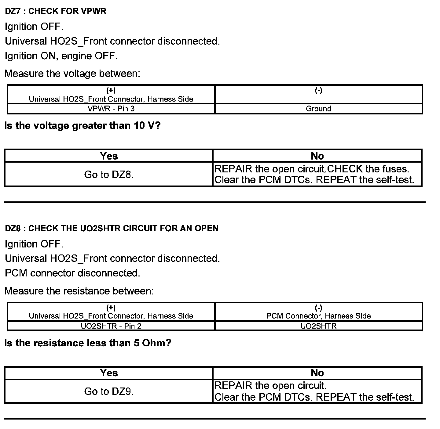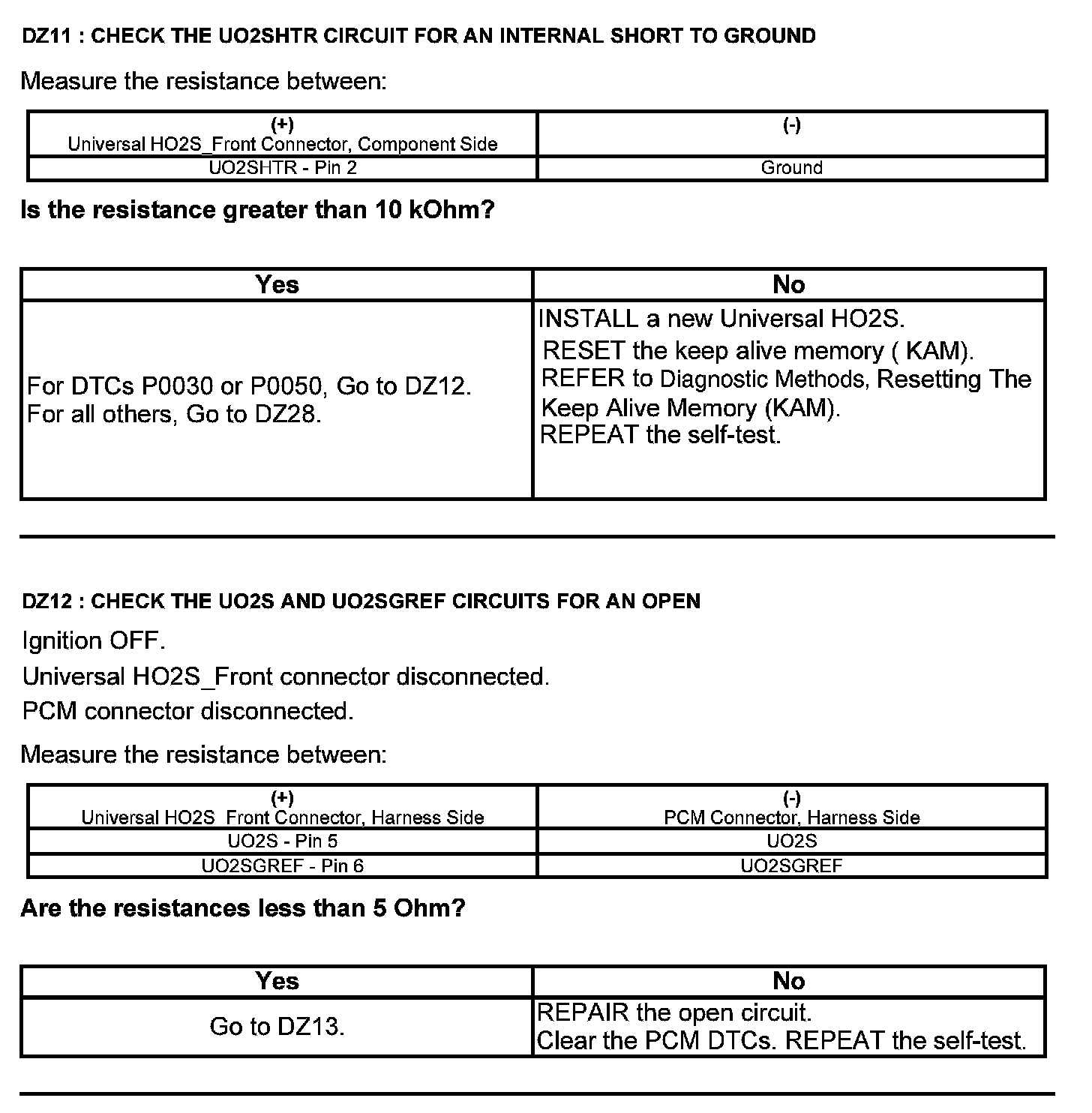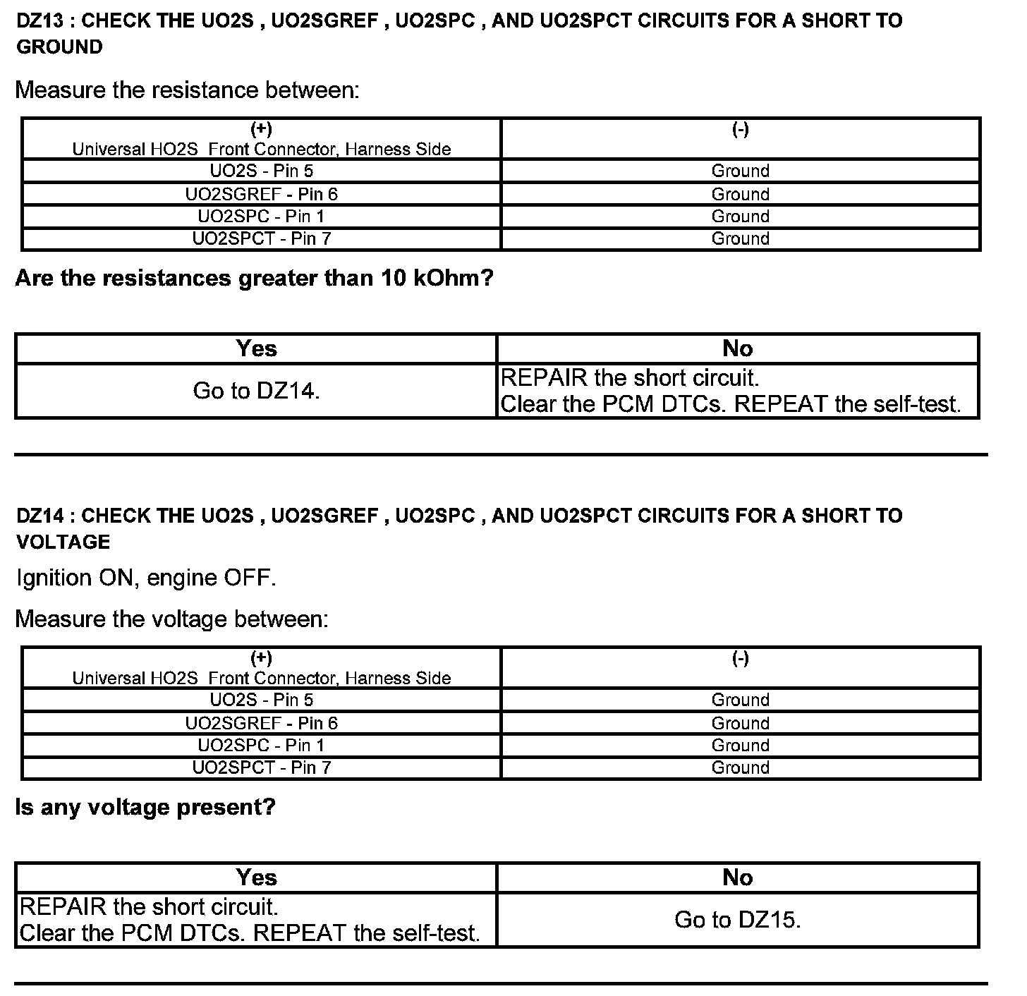 Test DZ: Universal Heated Oxygen Sensor (HO2S)