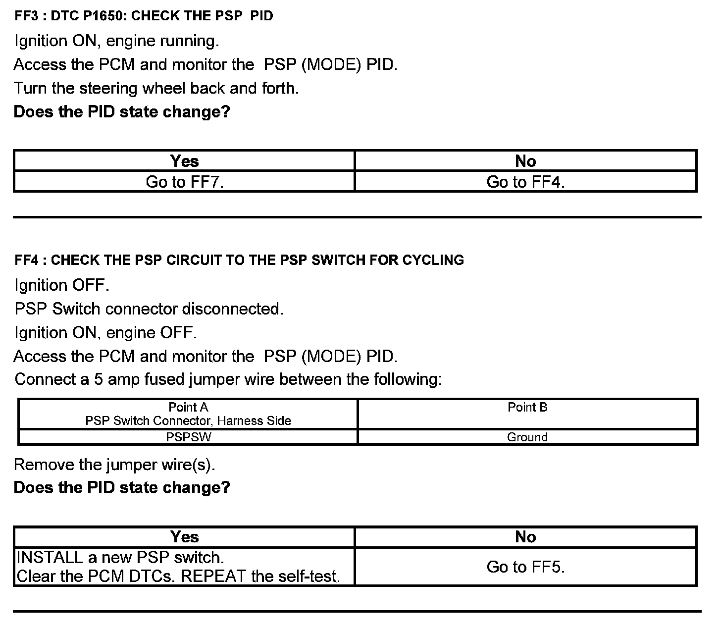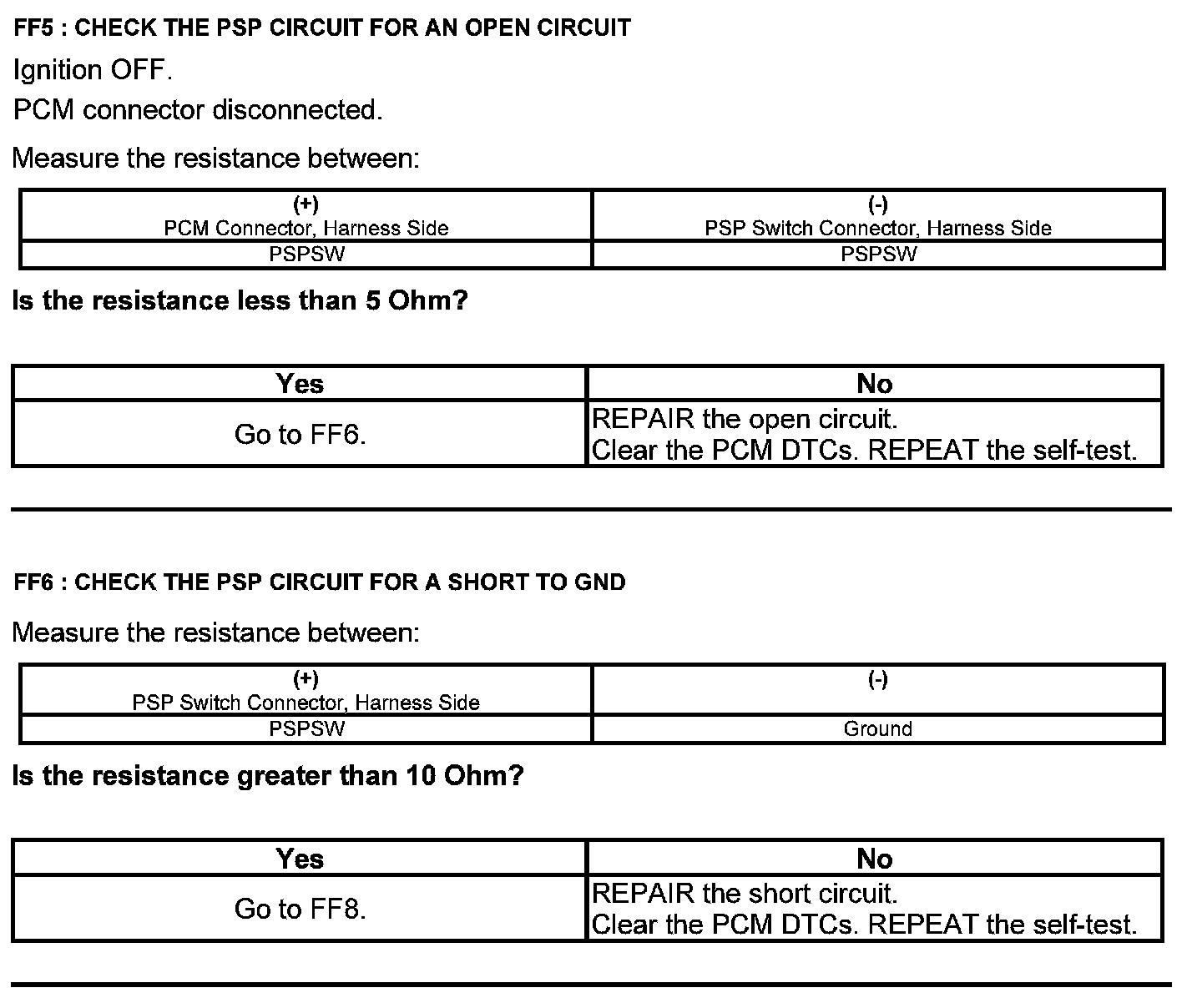 Test FF: Power Steering Pressure (PSP) Switch
