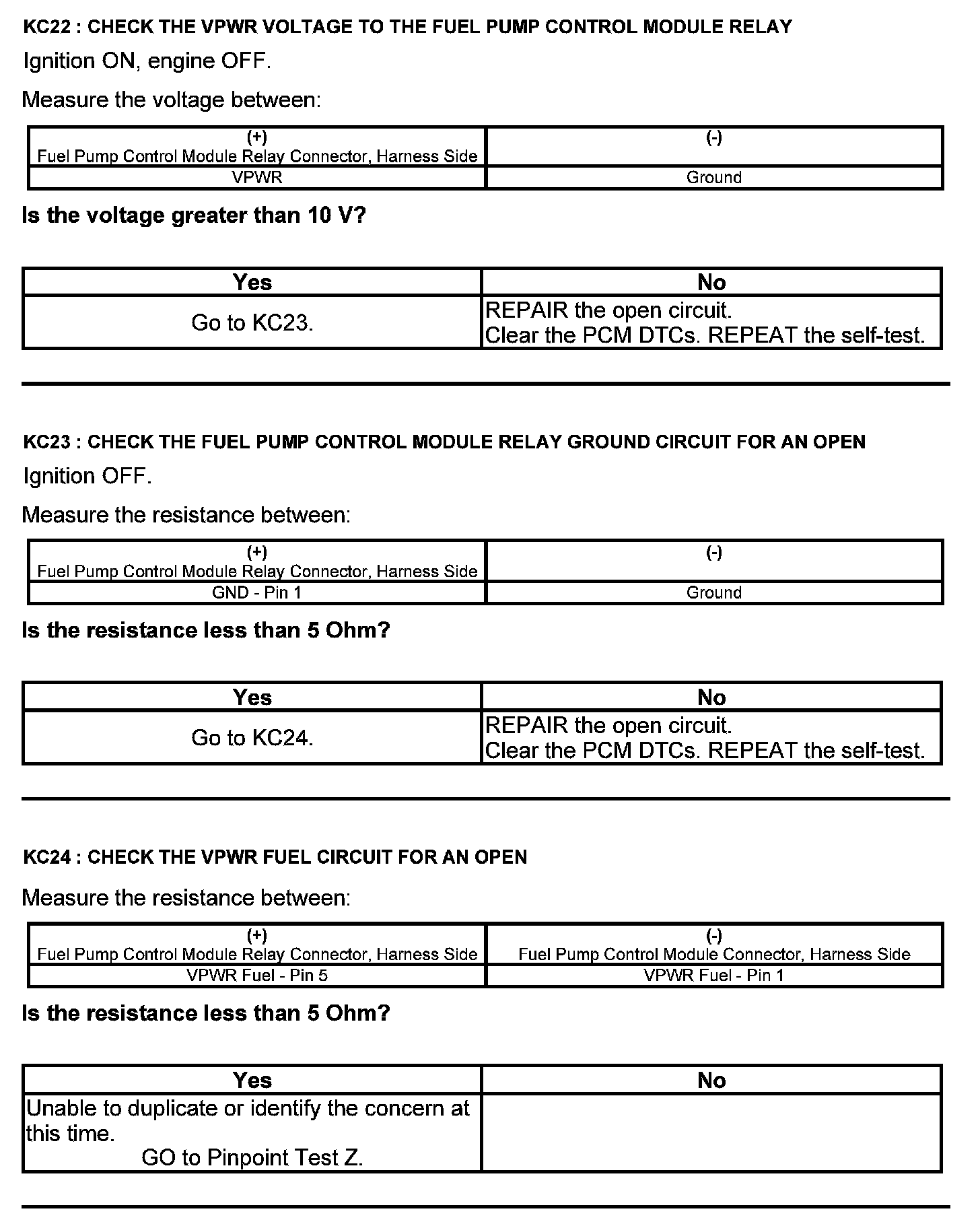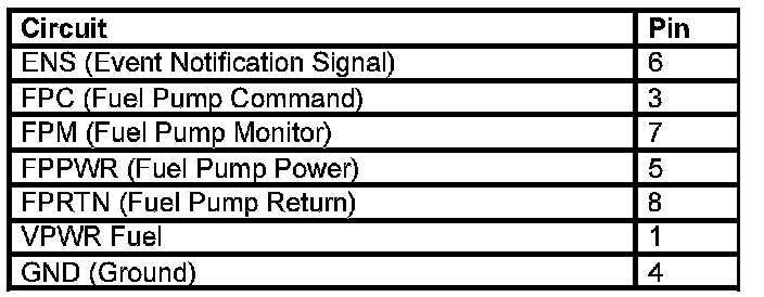 Fuel Pump Control Module Relay Connector - Refer to the Wiring Diagrams for schematic and connector information.