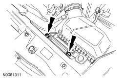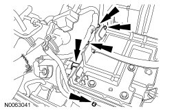 10. Remove the upper battery tray bolt and nut and remove the battery tray and bracket.